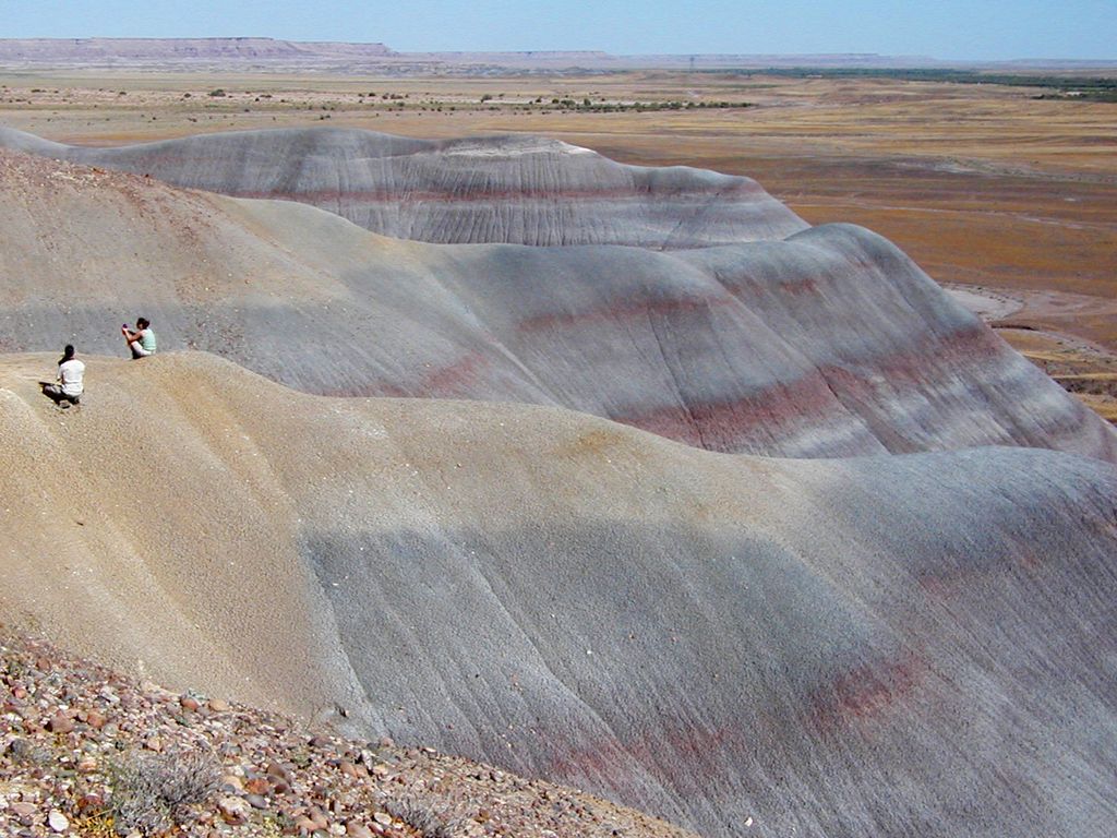 Carnotite (radioactive potassium uranium vanadate mineral) mine in the Chinle Formation. Carnotite mines saw a boom in production in the late 1940s at the end of World War II. Currently mining is banned near the Grand Canyon.