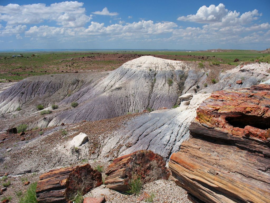 The logs were swept downstream in a flood and were buried in sediments of the colorful Chinle Formation. It is the largest accumulation of petrified wood in the world.