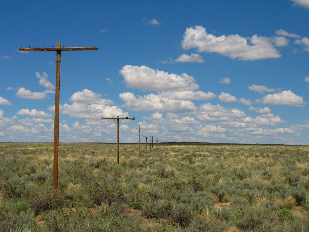 Abandoned telephone poles mark the path of old US Route 66.