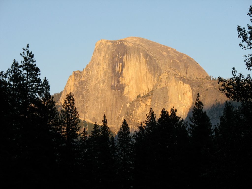 Alpenglow on Half Dome from Sentinel Bridge.