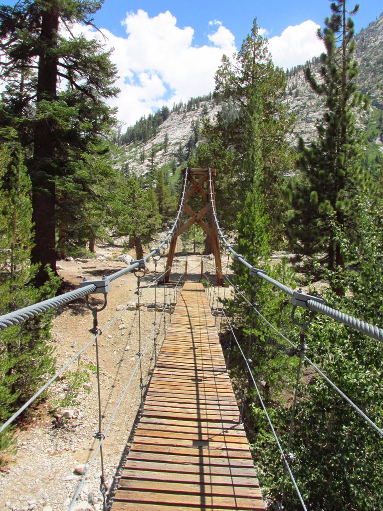 Suspension bridge over Woods Creek, it supports a single person at a time, swaying with each step.