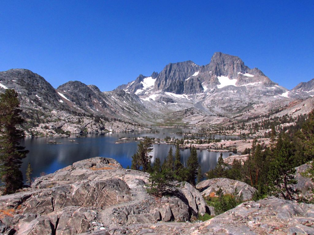 Mount Ritter (left, 13149 feet, 4008 m) and Banner Peak (right, 12936 feet, 3943 m) from Garnet Lake.
