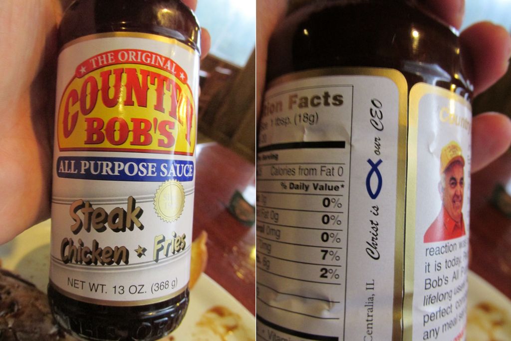 I celebrate crossing the Mississippi with a fat rib-eye steak and some Country Bob's All Purpose Sauce. I'm definately not in New York anymore. The salad was iceberg, and the "vegetable medley" was gray mush. But damn, they know how to cook a steak.