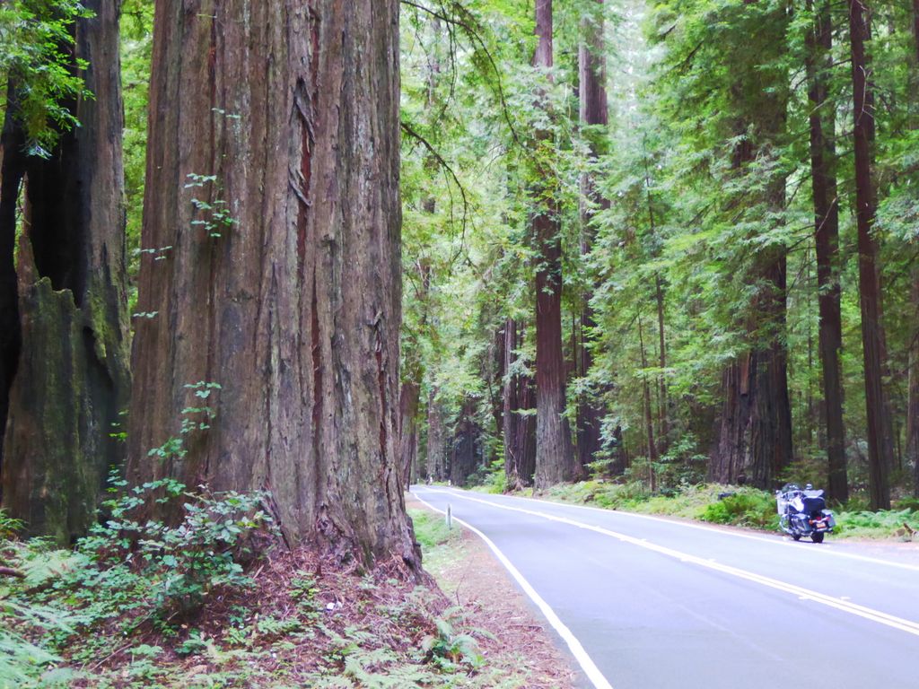 July 8 Eureka to Santa Cruz (397/5591 mi) - South of Eureka, modern US 101 has been rerouted, so we follow the old route, now CA 254, or "Avenue of the Giants", 32 miles (51 km) through groves of imposing redwoods.