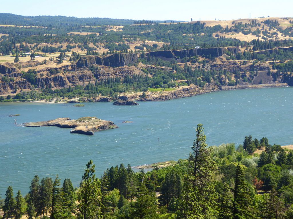 Memaloos Island in the Columbia River from the Historic Columbia River Highway. On October 29, 1805, Lewis and Clark called Memaloose Island Sepulchar Island. It was one of several islands commented on by Lewis and Clark as containing burial vaults for the Indian tribes that lived along the Columbia River. The name is derived from Memaloose Ilahee, Chinook jargon for land of the dead.